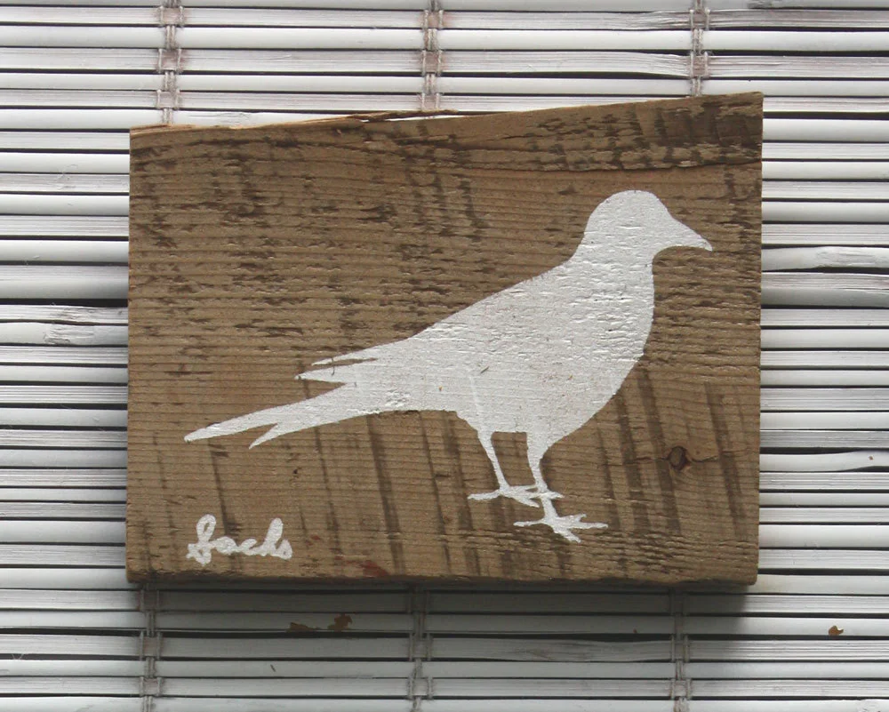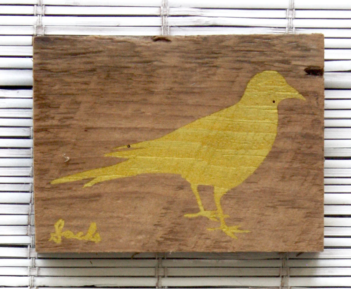 CROW SCREEN PRINTED IN AQUA INK ONTO RECLAIMED BARN WOOD SIDING.