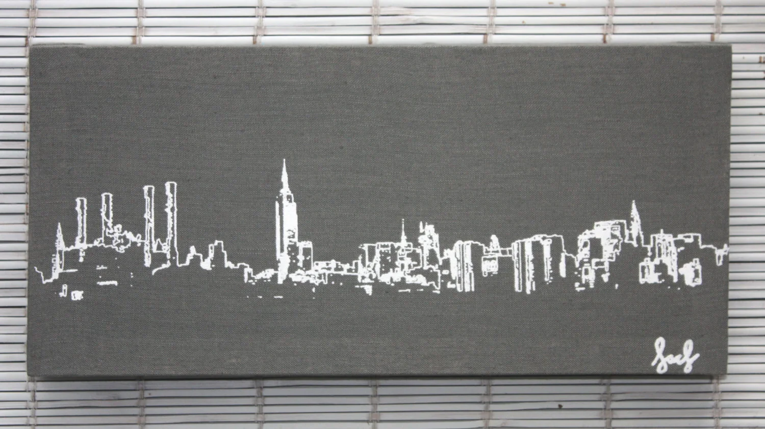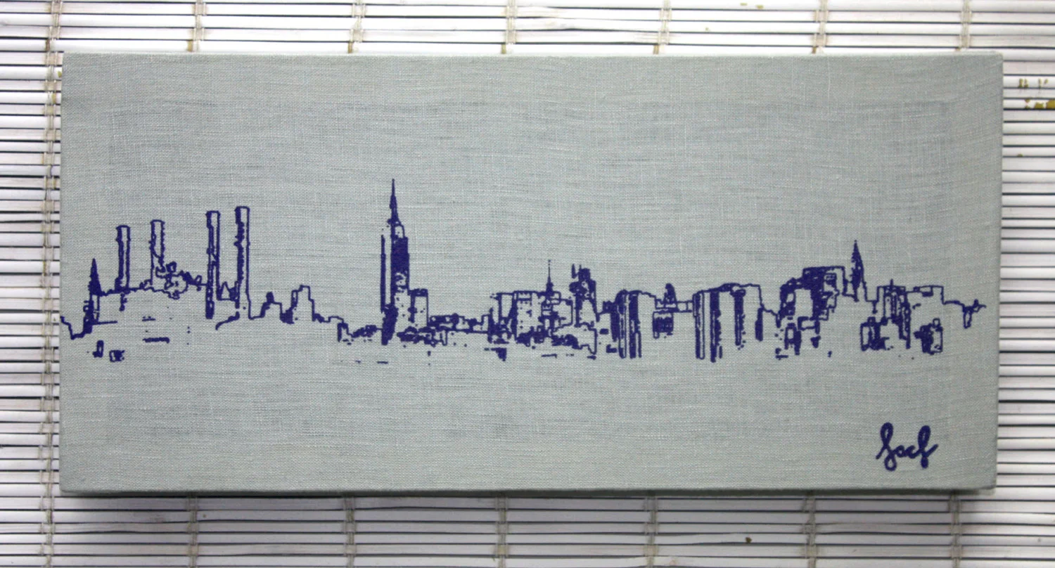 NEW YORK SKYLINE ON LINEN IN NAVY