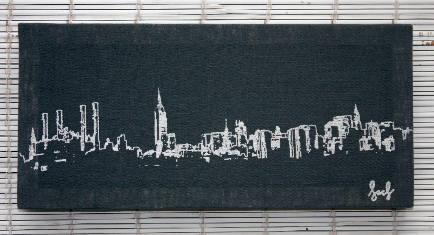 NEW YORK SKYLINE ON LINEN IN NAVY